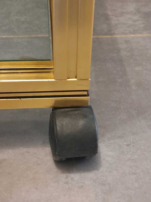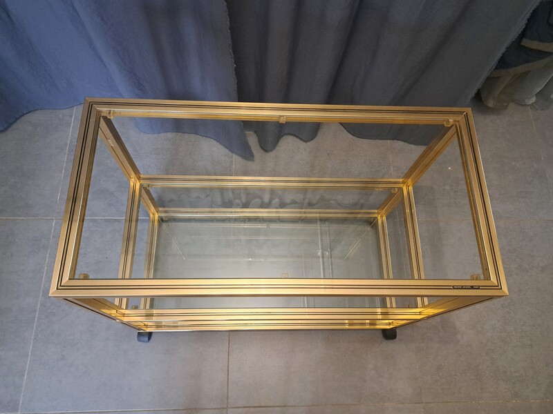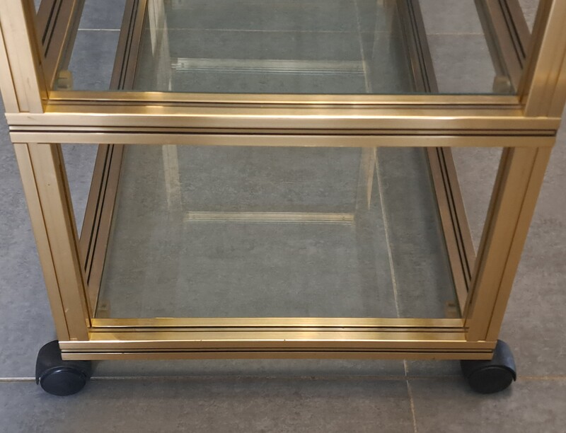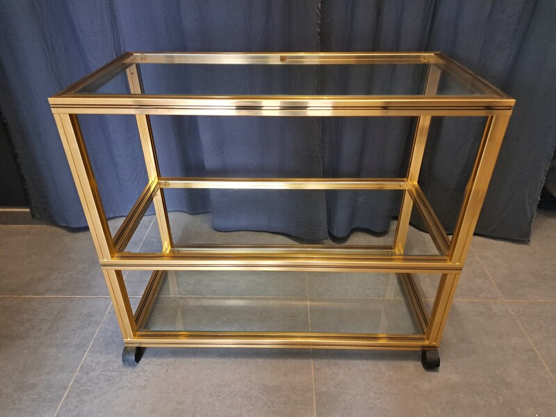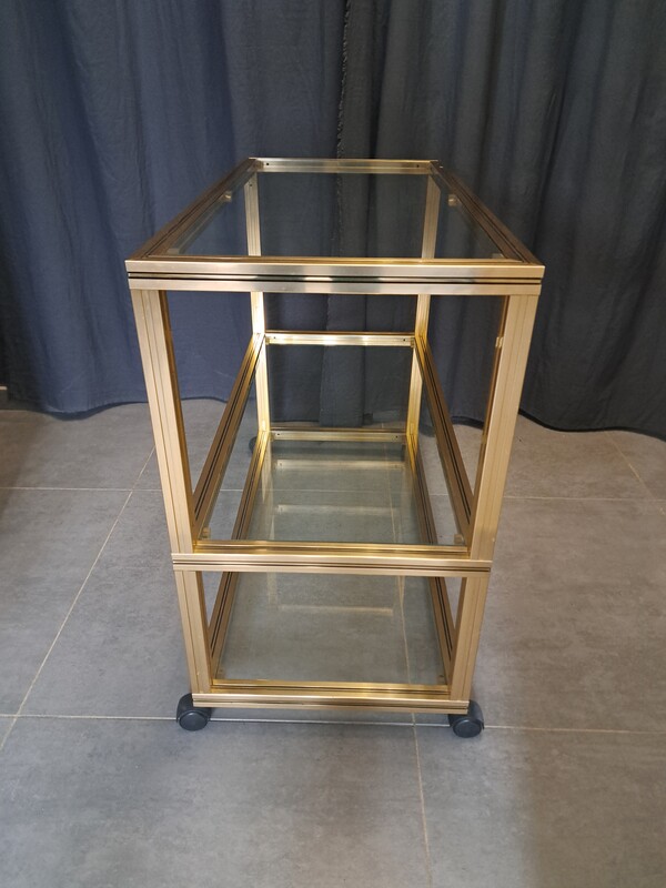 Pierre Vandel rolling trolley in gold aluminum with 3 glass shelves