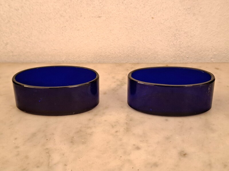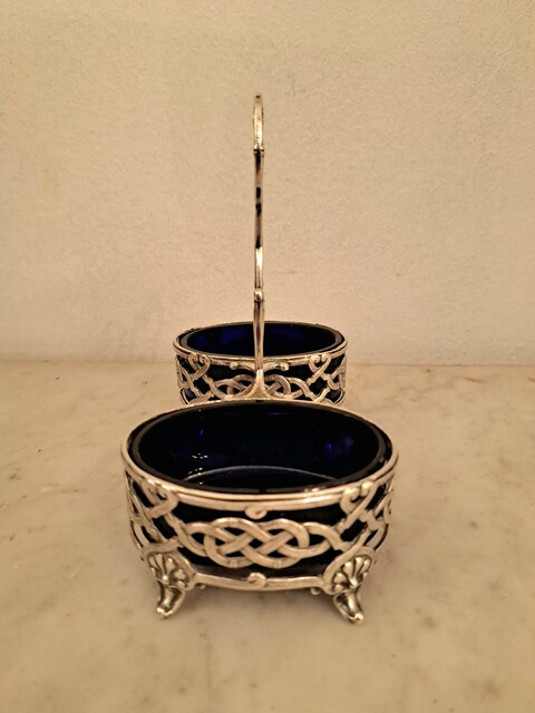 Christofle double salt cellar in silver-plated and cobalt blue glass